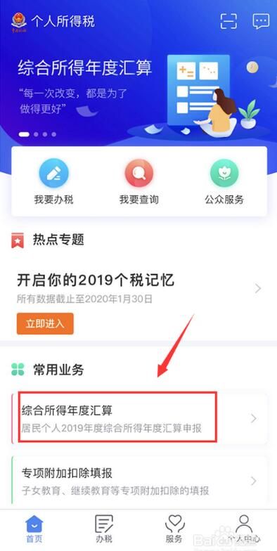 1、登录你的个人所得税APP。首页点击个人年度汇总,如下图所示