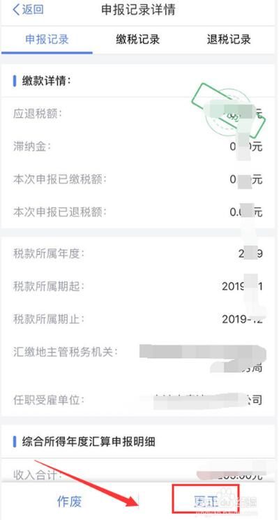 5、进入汇总详情,点击更正,如下图所示
