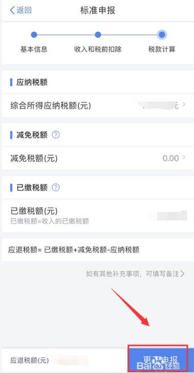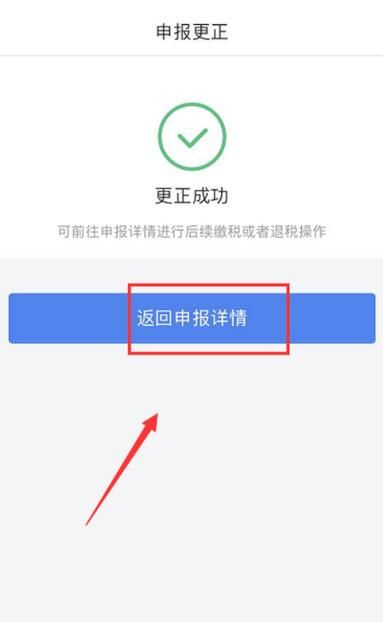 13、更正申报报税成功,点击返回详情,继续填报退税即可,具体可参考经验引用,如下图所示