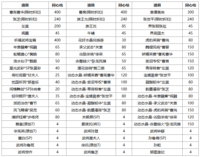 1、同心结可兑换奖励,若兑换奖励是在此次活动前已拥有的永久武将、皮肤、三国秀,则无法重复兑换。