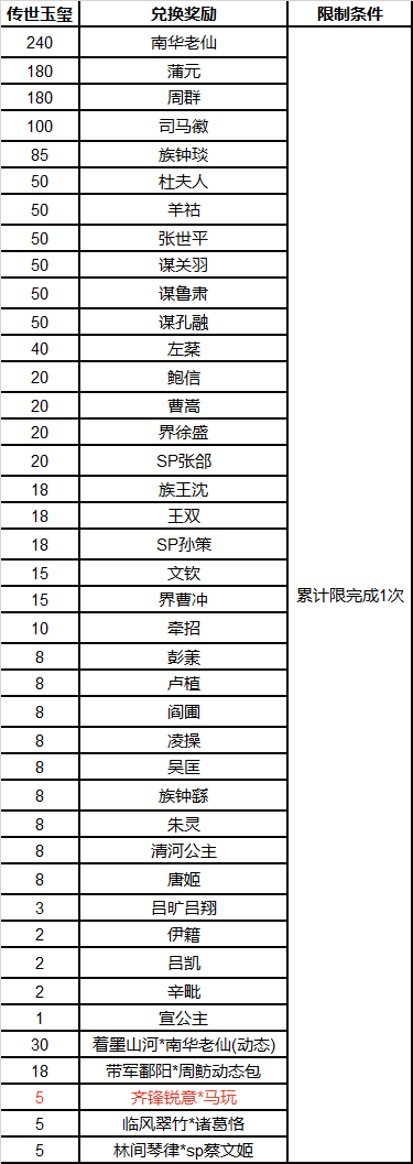 *开启自选武将宝箱可自选以下奖励其一:唐姬、朱灵、卞夫人、传世玉玺*1;