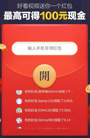 点击上面的图片输入手机号安装好看视频APP即可领到!