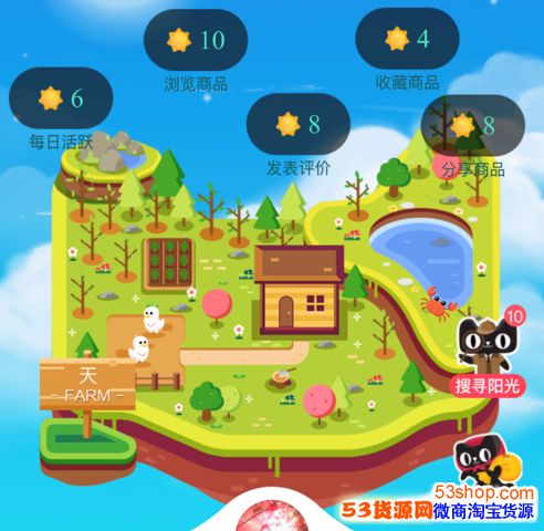 3、使用手机天猫app获得阳光,用户每天的浏览、收藏、加购、分享、购买商品、评论商品等活跃度行为,均会在次日产生阳光,具体数值随机;