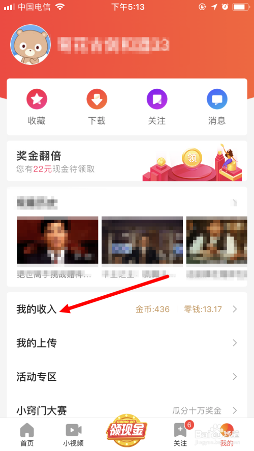 然后在个人页面点击 我的收入 。