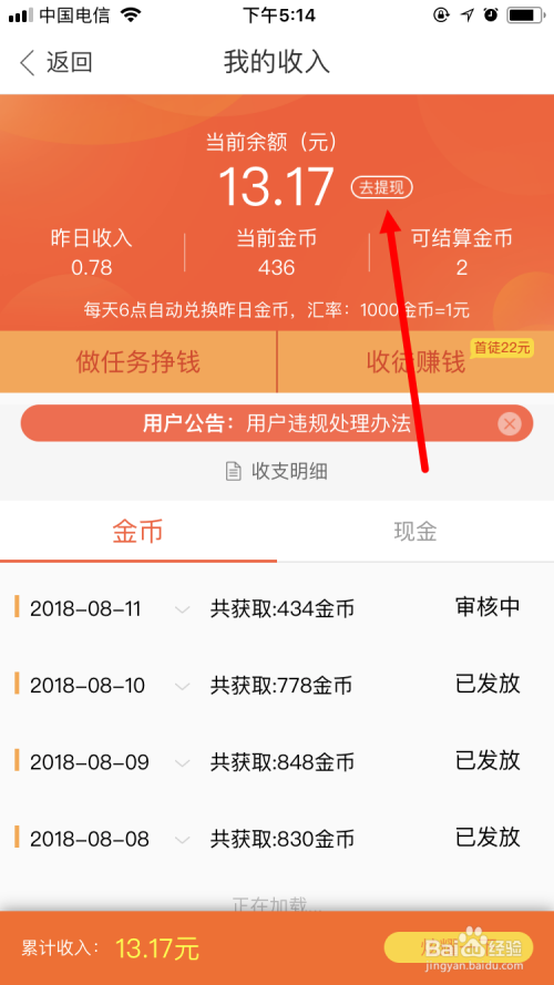 再点击 去提现 。