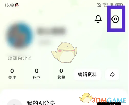 1、在我的页面,点击右上角的【设置】图标。