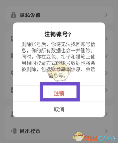3、在弹出的窗口中,点击【注销】,即可注销账号。