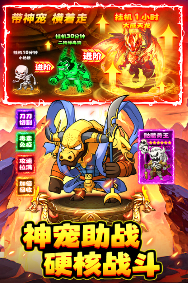 除了玩家自身的战斗力之外,宠物系统也是游戏中非常重要的一环,小伙伴们在野外闲逛的时候有很大的概率可以碰上神宠,而此时只要使用收服技能,就可以直接让它们成为你自己的专属宠物了。在经验达到要求之后,玩家们还可以通过挂机的方式来让他们进化,一共能够进化两次,如果说运气比较好的话,进化到第2次的时候,还可以直接让它成为神宠。有的宠物不仅攻击力极强,还会带有一些特殊的功能,比如说能够让你回收装备时所获得的金币翻倍。