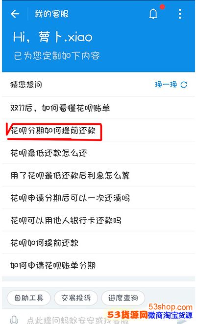 以上就是花呗分期如何提前还款的方法介绍,大家可以了解下,更多的关于花呗信息关注53货源网专题介绍。