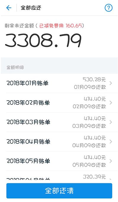 在操作【提前还款】时,见面所有未出账单手续费,操作【提前还款】不减免手续费。下面就举个例子说明: