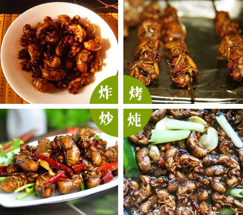 知了的吃法多样,油炸、烧菜、烧烤……放辣椒、放花椒、放孜然。