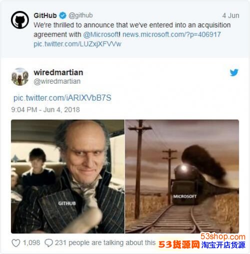 Twitter 网友 @Wired Martian 调侃 GitHub 这辆小车要被微软给撞翻。