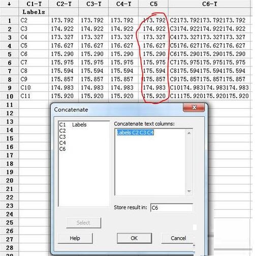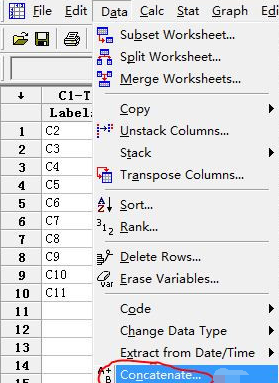 minitab把多列数据连接组合成一列的操作方法