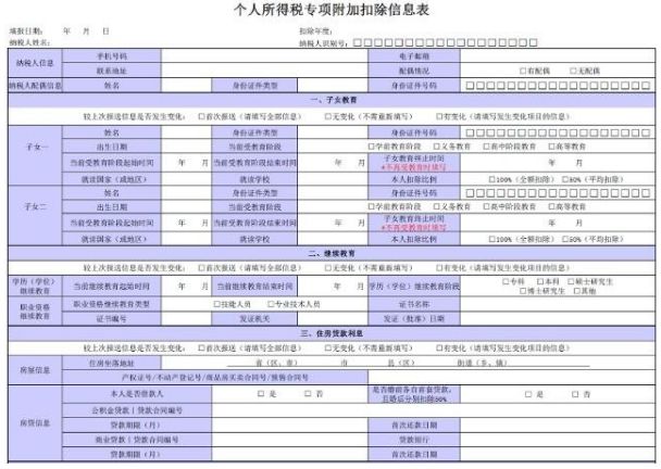 3、如果表格篇幅不够,可另附多张《个人所得税专项附加扣除信息表》;