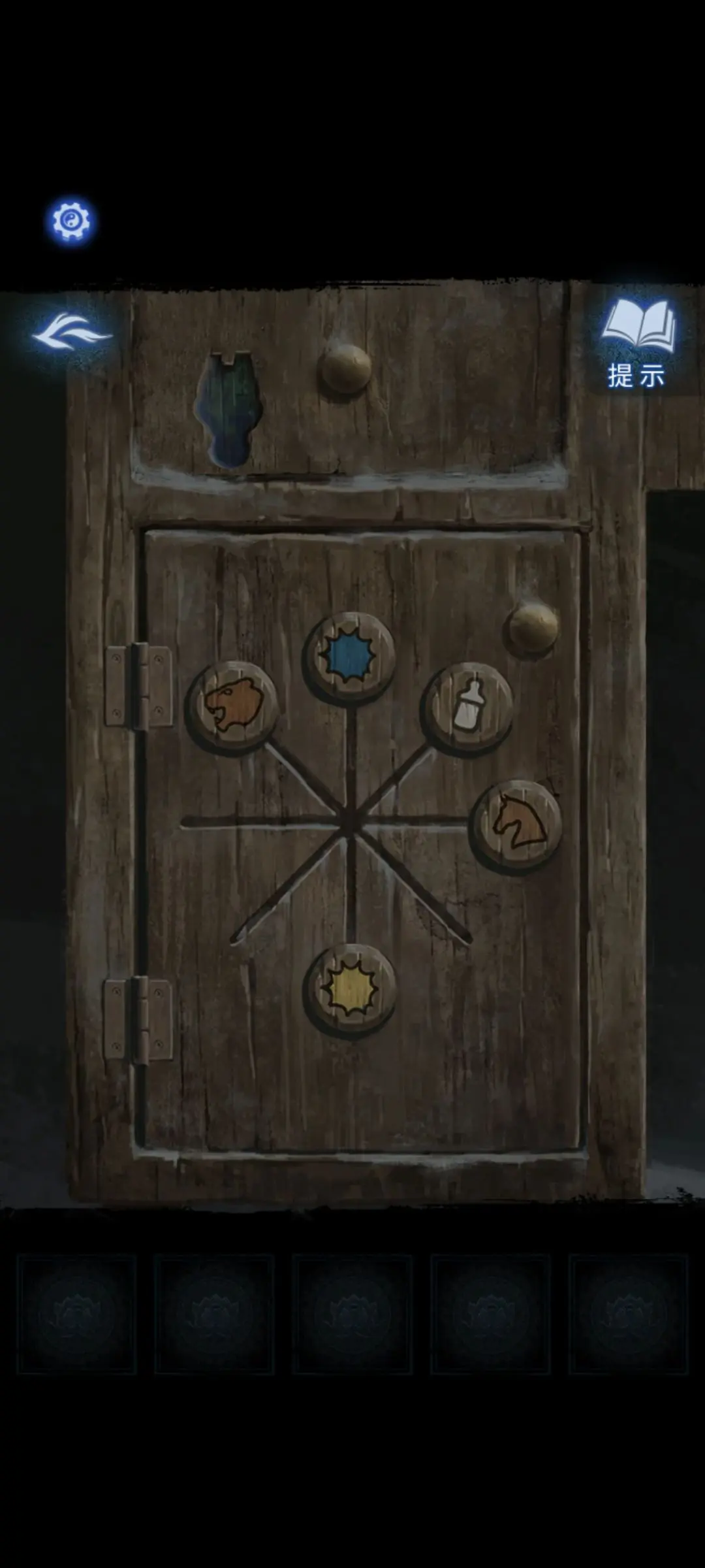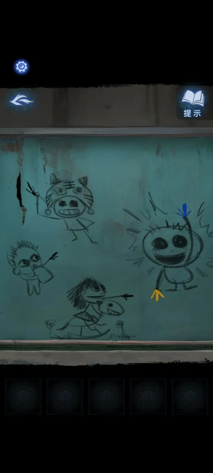 3:进屋后会发现墙壁上有壁画,根据壁画所在位置提示,打开左下方的木柜子。得到红色小人,黑色锦旗