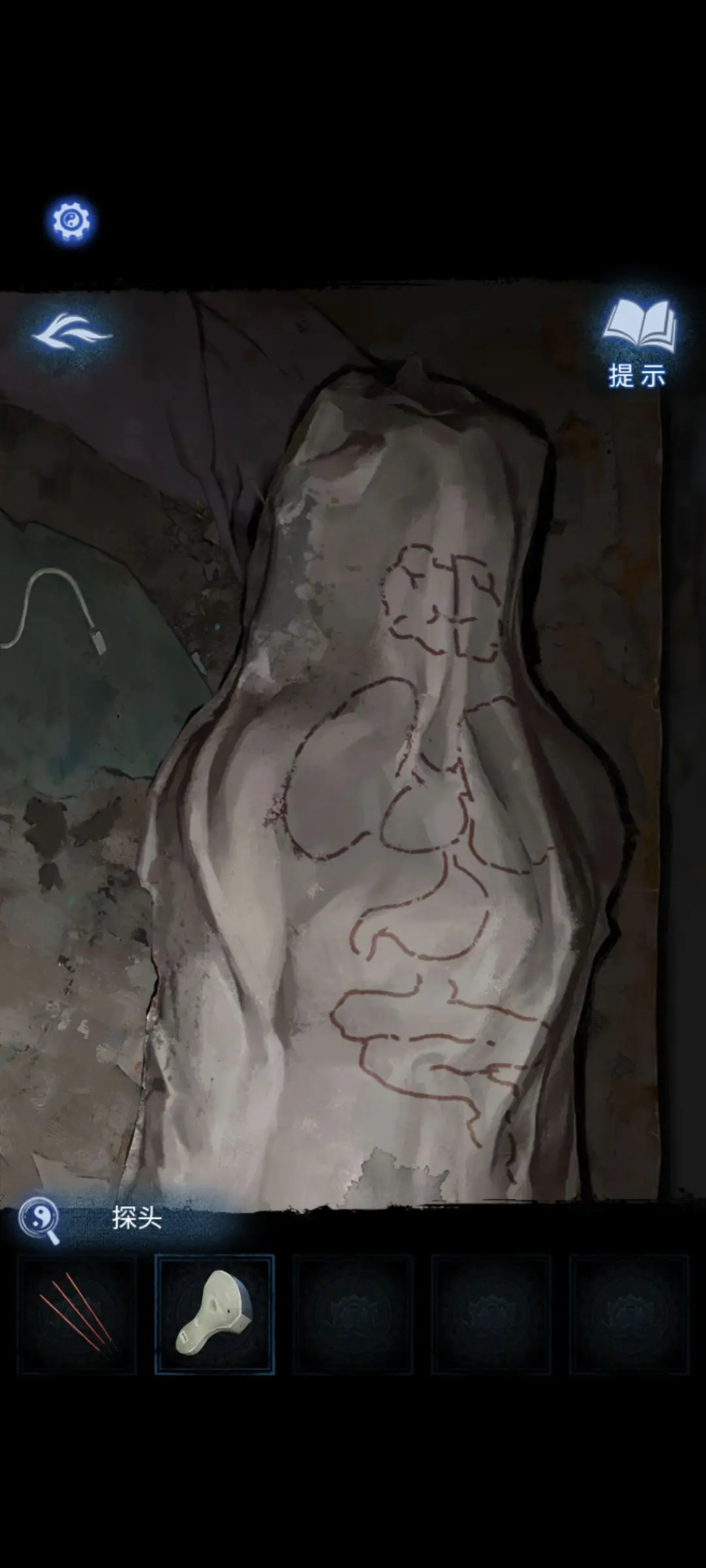 10:回到检查室将小木人放在刚才打开的木柜子的上方的空缺。获得探头