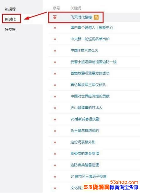 现在点开热搜榜单,可以非常清楚的看到在排名第一的话题上有个方向朝上的箭头,点开后会发现一个新的新时代目录,里面是关于新时代的一些热门信息,是新增的功能。