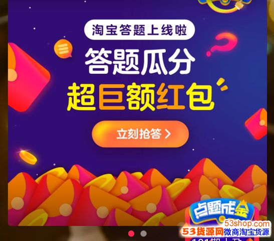 以上就是淘宝点题成金免答卡怎么得的介绍,小编就说到这了,更多的淘宝答题活动可以关注53货源网。