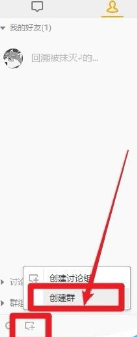 弹出好友列表,点击【添加】--点击选择【创建群】