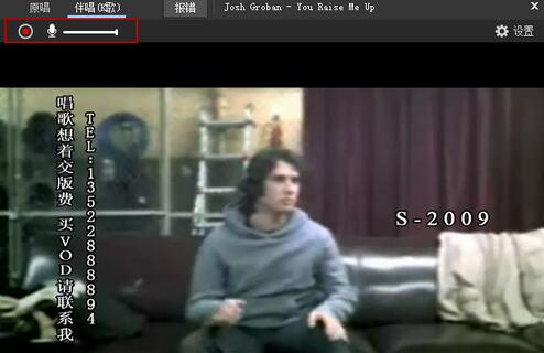 3、左上角会有个录音的标志,当你开始唱时酷狗会给你自动录音,若觉得唱的不好可以取消录音重新唱。