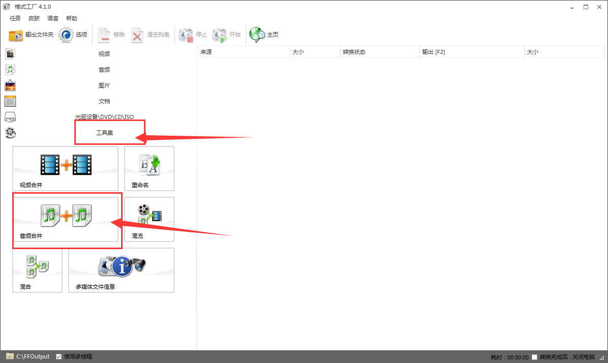 格式工厂合并多首歌曲的操作流程