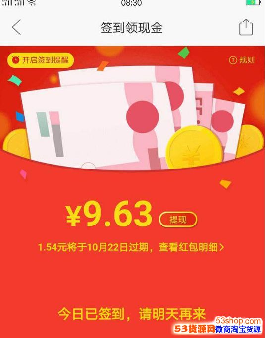 朋友圈的另一个朋友也给我说:自己还剩3天就签到一个月了,最近每次都领几分的,还提示说,第一天领的红包到一个月的时候将会过期。估计凑够10元钱也无望了!
