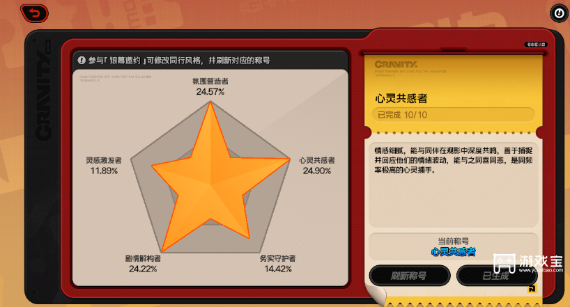 一共5个称号项,百分比(%)占比最高的称号项将在活动结束后,永久固定在你的账号上。