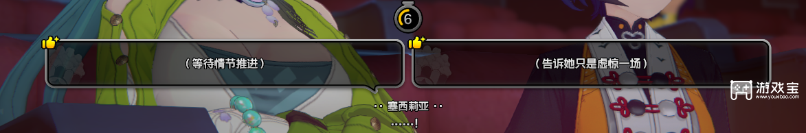 例如邀约塞西莉亚:下图节点2,选"(等待剧情推进)"选项。