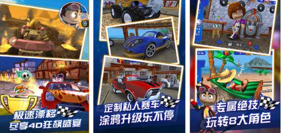 以高保真卡通渲染风格呈现动态沙滩地貌,车辆行驶时触发实时沙粒位移、轮胎压痕叠加与飞溅轨迹追踪,形成具备物理连续性的4D视觉反馈。赛道设计融合起伏坡道、悬浮跳台与镜像回环结构,配合陀螺仪适配的动态视角偏移,强化速度感与空间方位认知。车辆库涵盖沙丘越野车、全地形怪物卡车等十余种载具,每类均搭载独立悬挂模型与扭矩响应曲线,驾驶手感差异化显著。