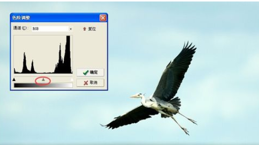 接着我们在色阶里调整明暗,可以使图片变得清晰