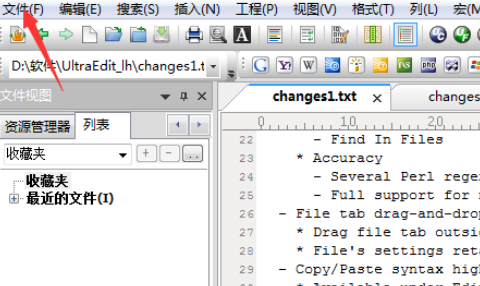 然后我们进入到了ultraedit的中的菜单中的“文件”的选项菜单。