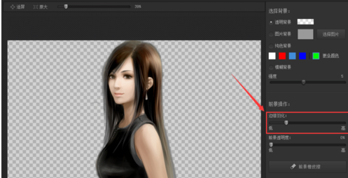 点击替换背景后,在期内找到边缘羽化选项,并调节其值,如图所示: