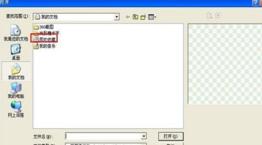 接下来我们在打开图片收藏夹后,我们在图片收藏夹中选择我们喜欢的图片,然后,用鼠标的左键点击,在点击图片后,点击打开。