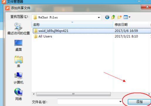4、然后找到你要共享的文件或者是文件夹,单击选中文件或者文件夹就可以了;