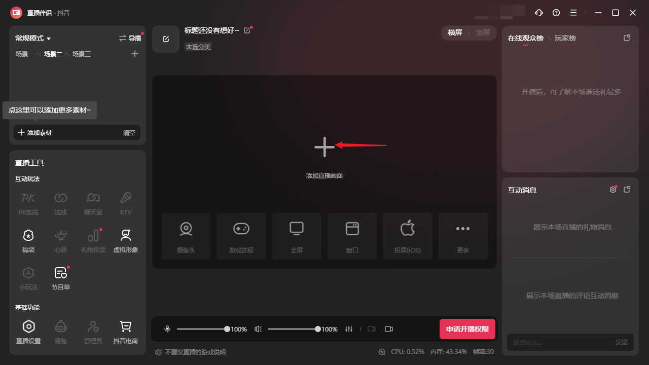抖音直播伴侣怎么添加直播画面?抖音直播伴侣添加直播画面的方法