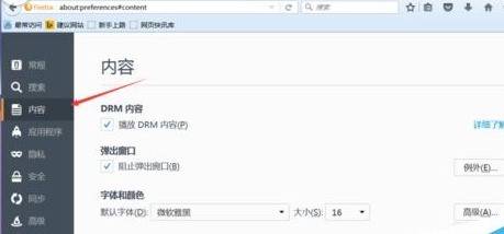 接着我们单击选项中的“内容”。