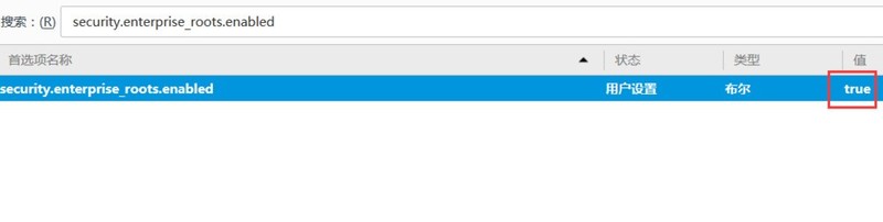接着在搜索栏中输入,“security.enterprise_roots.enabled”;