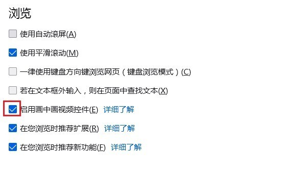 3、将启用画中画视频控件勾选起来即可,如下图所示。