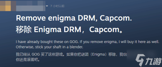 在《恐龙危机》的Steam论坛里,可以看到大量玩家对卡普空这一“愚蠢又莫名其妙”的决定表示愤怒。有玩家直言:“一款27年前的游戏还要上DRM?认真的吗?”