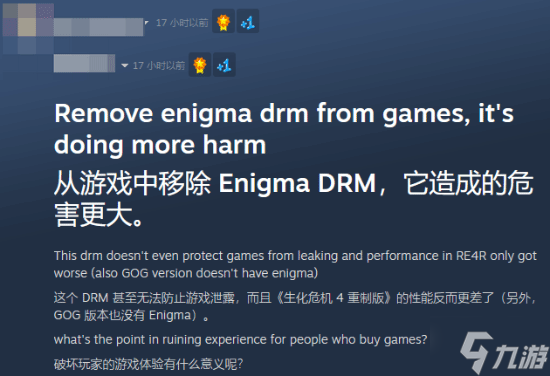 此前,《生化危机4:安魂曲》在移除D加密后,引入的全新加密保护措施正是The Enigma Protector。数毛社已经正式确认,该加密措施会大幅影响游戏性能。