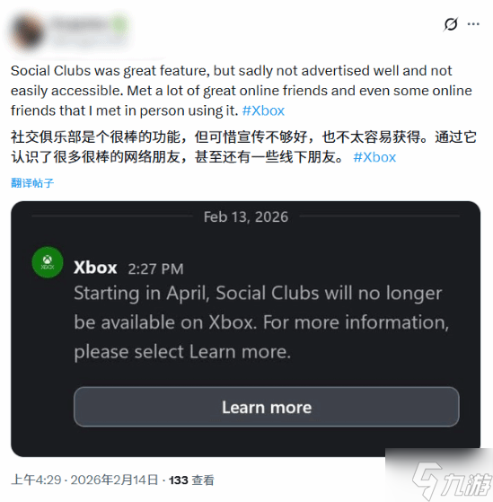 微软近日开始向 Xbox 玩家发送通知,宣布将关闭 Social Club(社交俱乐部)功能。这一曾在 Xbox One 及 Xbox Series X|S 主机上提供的社区功能,预计将于 2026 年 4 月起停止服务。