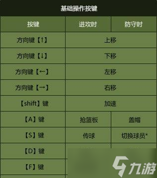 2.控制球员移动的基本操作:使用方向键或者WASD键控制球员的移动,通过按住Shift键来进行跑动,并用空格键完成跳跃动作。