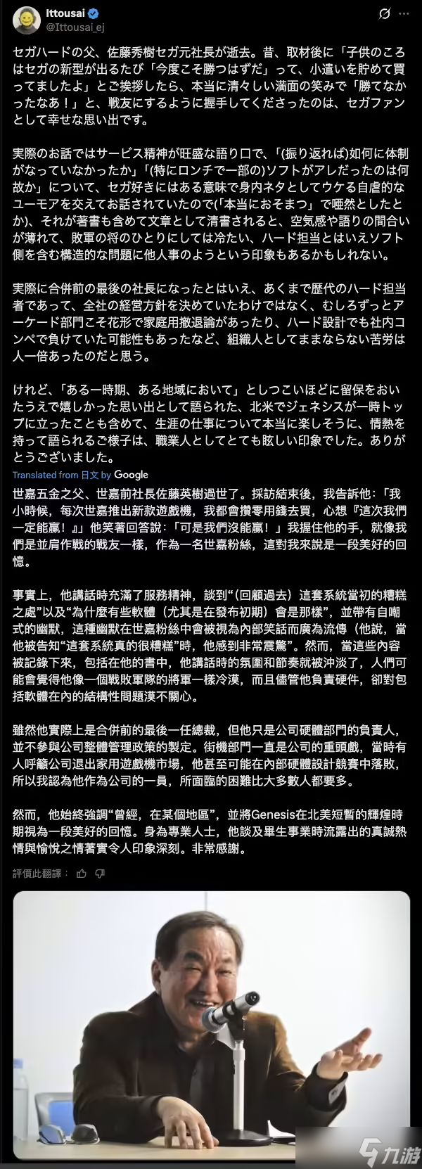 世嘉硬件之父佐藤秀树逝世,享年75岁