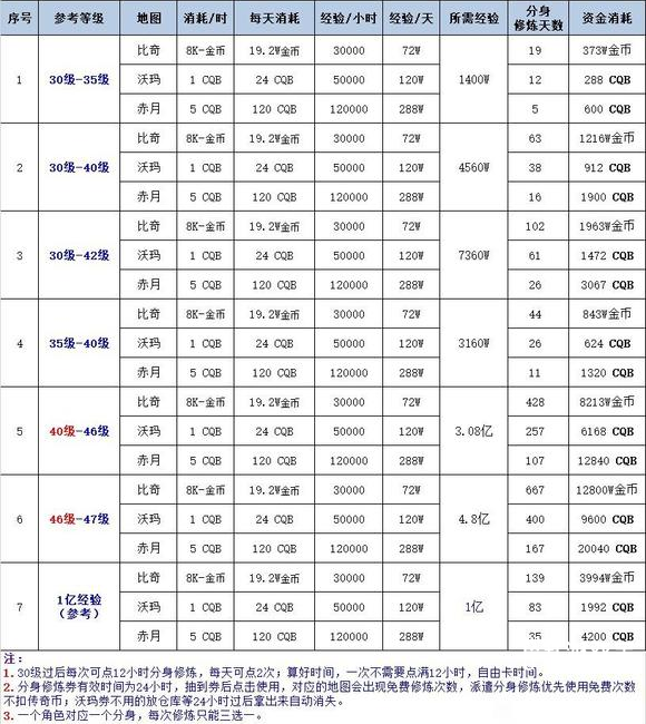 1、没钱的穷人的天花板大概就是44级,因为0~44级约1.6亿经验,花费3200元宝沃玛分身修炼,4个多月达到44级,如果实在没钱也可以用游戏里面每天打到的金币比奇分身修炼达到44级,就是时间慢一点而已。