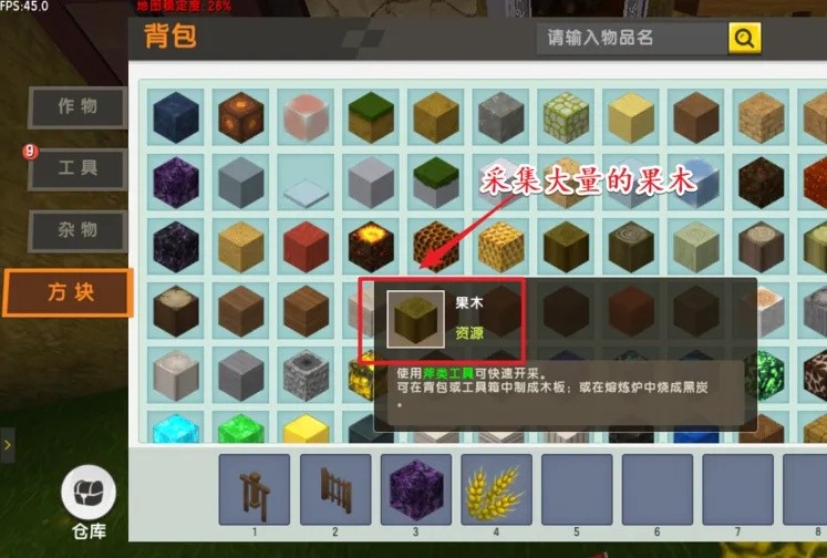 然后使用熔炼炉,将3个岩石块烧制为3个岩石材料。