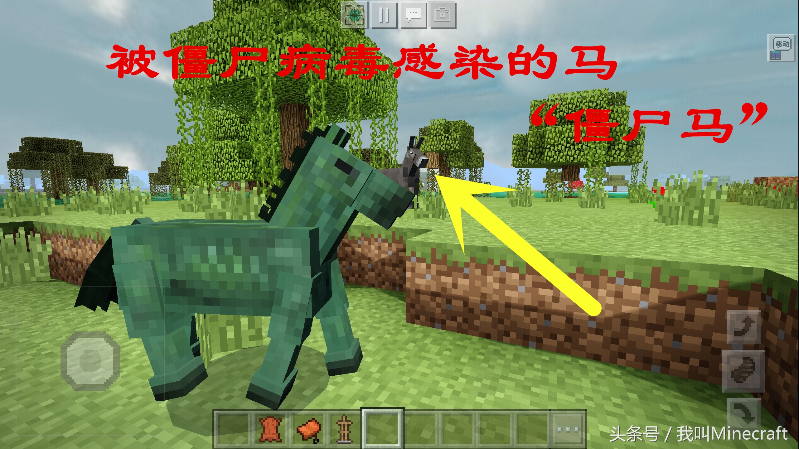 僵尸马召唤指令:/summon zombie_horse,这个指令PC与手机版通用,当然也有对应的刷怪蛋。只是僵尸马怎么也骑不了,看来这是僵尸的坐骑了。说不定哪天Mojang就更新出一只骑着僵尸马的僵尸,来作为僵尸中的大BOSS。