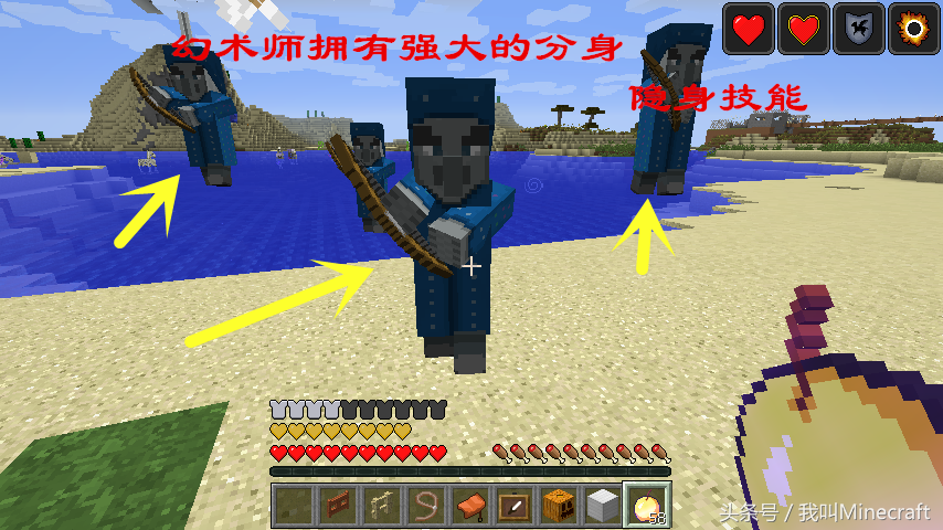 “幻术师”实际上是刌民的一种,你无法在《我的世界》任何地方找到他,包括林地府邸中。“幻术师”有几个逆天一般的技能:分身、隐身、以及失明。如果你玩过暮色森林的话,一定很熟悉这几个技能。巫妖的无敌分身,黑森林的失明结界。可见幻术师具备的绝对是Boss级技能。如果给幻术师足够的血量和AI的话,他将成为MC新一代的相当难对付的隐藏BOSS!