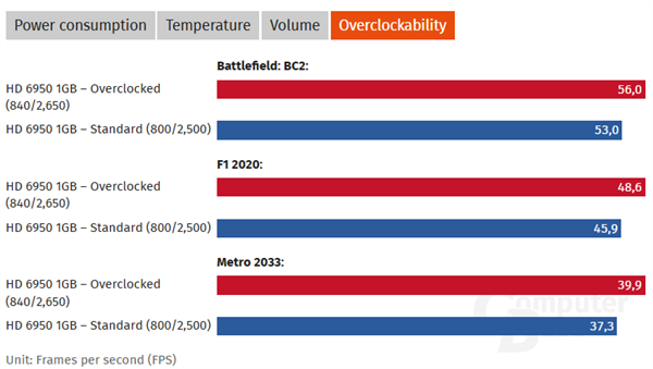 这次测试的重点是HD 6950 1GB,也就是显存少了一半的精简版,成本更低。