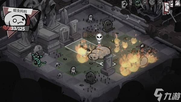 第三关骸骨地最恶心的是小骷髅会复活,必须用劣质喷气背包炸才行,但我的背包没有升级,所以很有可能炸不中,在经历了折磨后我们对阵区妈妈