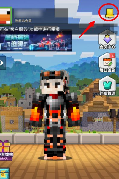 4、返回游戏主界面,点击右上方的系统消息图标。